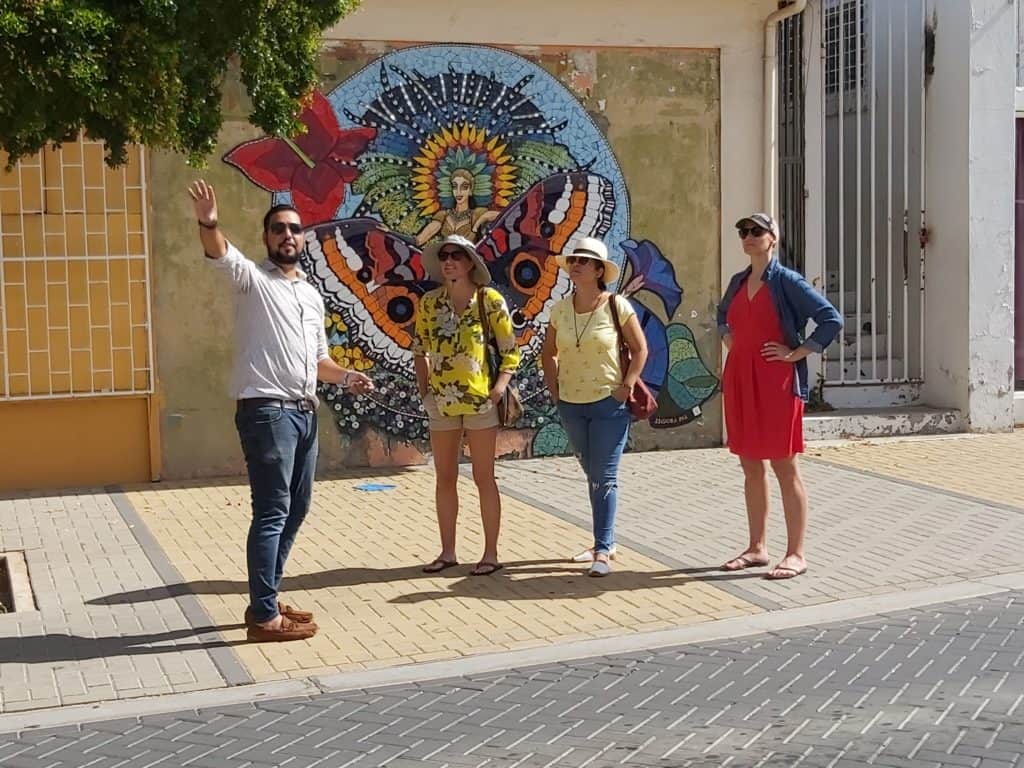 While everyone was getting ready for the famous “pagaras” in Oranjestad “downtown”, the Director of Aruba Mural Tours, Tito Bolivar spent his time in the Street Art Capital of Aruba (named by Forbes Magazine), San Nicolas to give his final tour of the year. Yes, even on the 31st of December we gave our final 2 tours of the year and we had loads of fun.